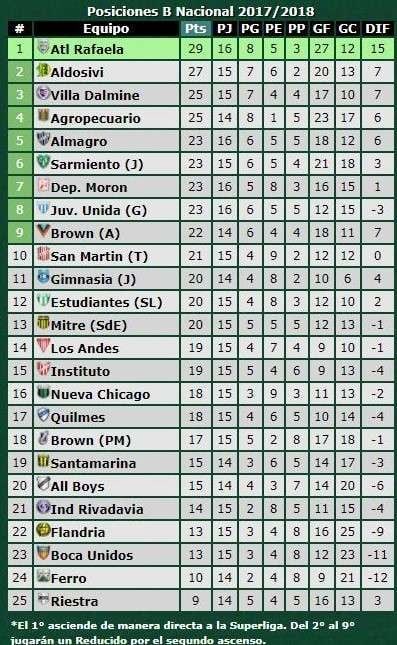 Con este resultado, Rafaela llegó a 29 puntos, dos más que su escolta Aldosivi de Mar del Plata (27); en tanto que Independiente alcanzó las 14 unidades, pero continúa en puestos de descenso.
