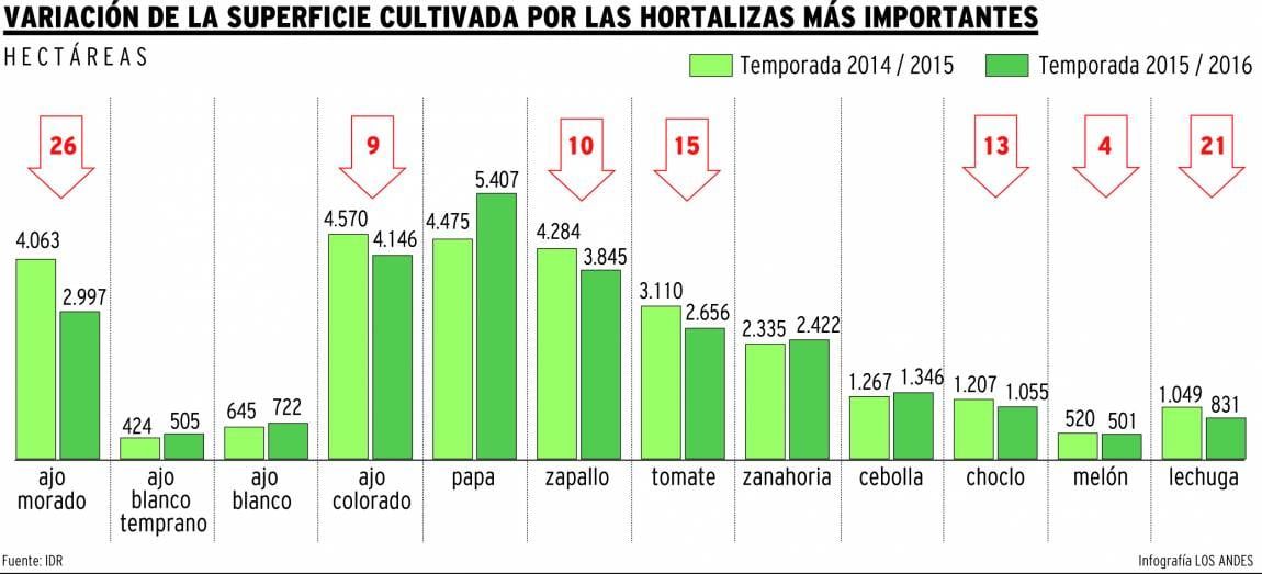 Según señala el reporte del IDR, esta disminución anual se debe principalmente a la menor superficie de ajo en 2015, la cual se redujo 14% con respecto a la del invierno de 2014.