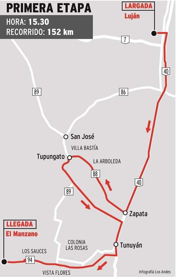 La Vuelta de Mendoza ya está recorriendo las rutas de la provincia y la primera etapa transitará las calles de Luján, donde fue la largada, continuó por Tupungato y finalizará en el Manzano Histórico.