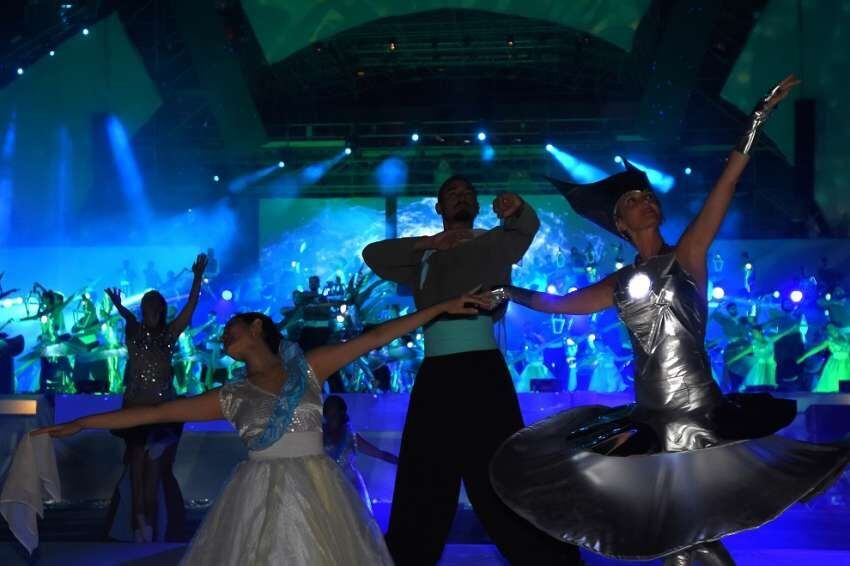 Una cosa es el escenario en vivo, desde el Teatro Griego, donde el aliento de miles de almas con ganas de festejar resignifican todos los momentos e instancias del acontecimiento. La percepción exaltada por las luces, los sonidos, la noche estrellada y los gritos de júbilo anulan el juicio. Lo mismo sucede en un estadio de rock o en una misa: la fuerza del vivo, la pulsión vibrante del acontecimiento, son las que se imponen.