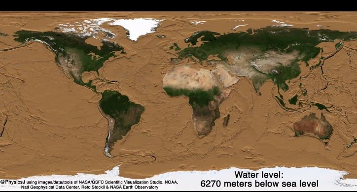 Un reconocido científico planetario realizó una animación de la NASA que muestra cómo se vería la Tierra si el agua de la superficie desapareciera. Las imágenes son impactantes.