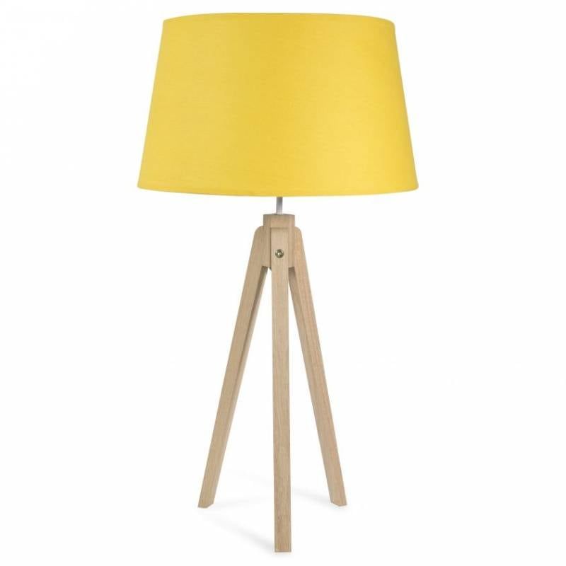 Creá un rincón de lectura junto a tu lado favorito del sillón con esta original lámpara. Tiene tres patas de madera con acabado natural y una preciosa pantalla en un intenso color amarillo. Pondrá una nota de luz a tu salón, incluso cuando esté apagada.