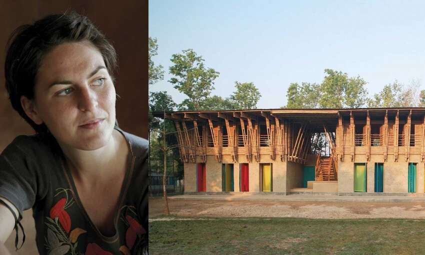 Le bastaron muros de tierra, paja, bambú y telas de saris para levantar el edificio que cuenta con un sistema de aprovechamiento bioclimático. Tras este éxito construyó la escuela para electricistas DESI, también en Rudrapur y el Centro de Capacitación para la Sostenibilidad en Marrakech. En los últimos años ha diseñado algunos de los edificios para la Bienal Internacional de Arquitectura en Bambú, en China, un evento en el que se invita a arquitectos para construir edificios habitables en un espacio cultural e históricamente estratégico. En la foto, junto a la escuela METI en Rudrapur.