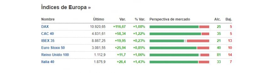 En Londres, el Ftse 100 avanza 0,85%, mientras que el Cac 40 en París sube 1,01%. En Madrid, el Ibex 35 asciende 0,08%, en la misma línea que el Dax trepa 0,78% en Francfort.