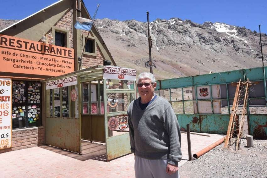 Lito Calabrese es un referente en la villa. Hace 16 años que trabaja en el lugar, en distintos restaurantes. Actualmente tiene uno de los establecimientos más cercanos a la boca del túnel 14, después del refugio de montaña del club Andinista de Mendoza.