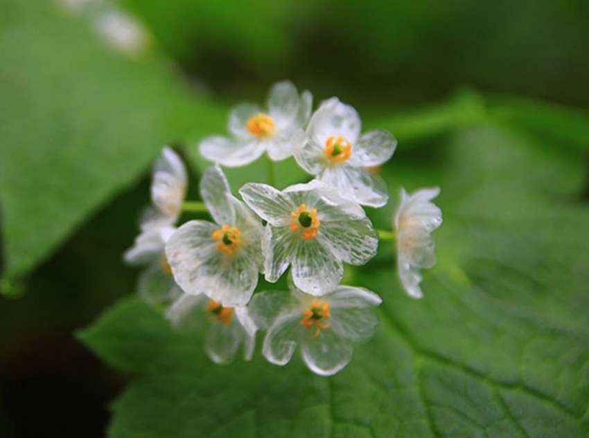 Su nombre científico es Diphylleia grayi y es una flor rara ya que se puede encontrar en muy pocas partes del mundo.