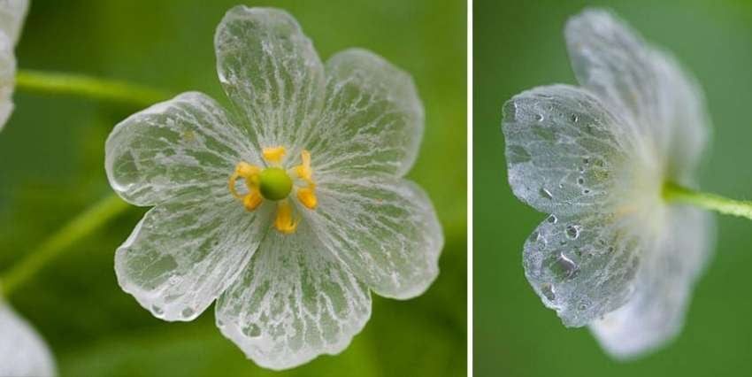 Cuando llueve, el agua fluye a través de las células del pétalo y lo convierte en cristalino y verdaderamente único.