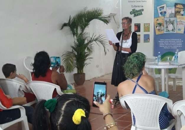 La escritora recién llegaba de Cuba donde había participado de la 27° Feria internacional del libro de la Habana. Su paso por ese evento dejó las últimas imágenes de Bodoc, en las que se la ve compartiendo con la gente y exponiendo sobre libros y literatura.