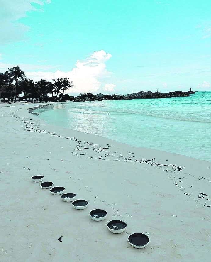 Una secuencia de contenedores de agua instalados bajo cielos límpidos es el escenario estelar donde la artista emplaza estos dispositivos que invitan a la apertura de la conciencia cósmica y que en la experiencia producen un sentir intransferible.