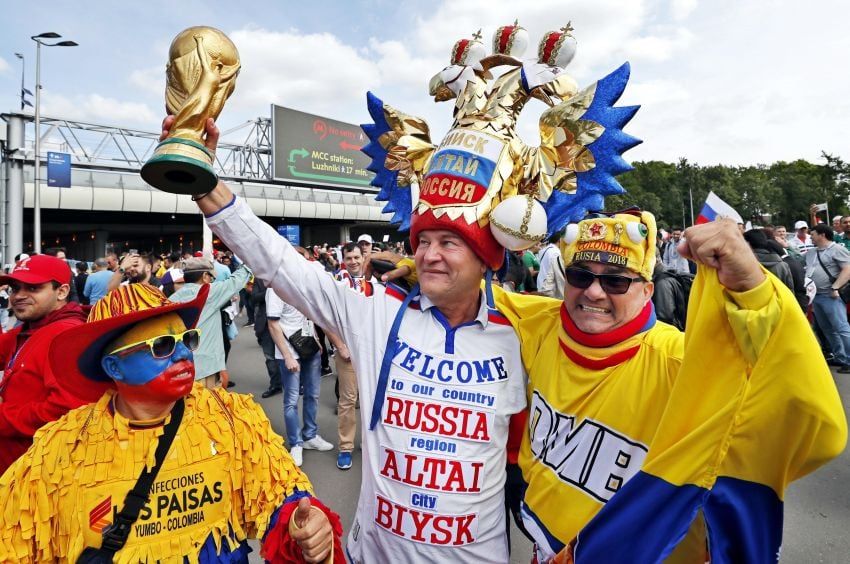 En las afueras del estadio la estatua de Lenin, el fundador de la URSS, presidió la llegada de aficionados, entre los que los más animados eran los latinoamericanos, a un estadio que acogerá también la gran final el próximo 15 de julio.