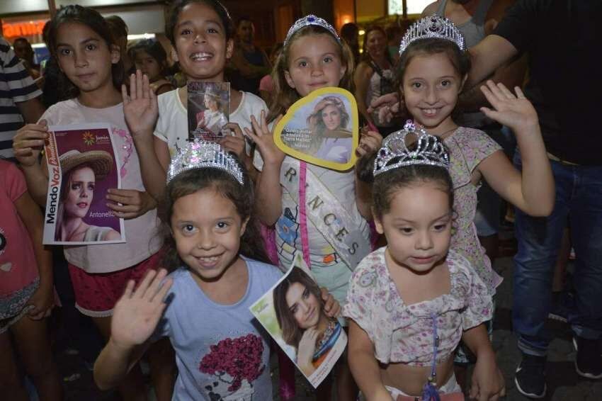 Coronitas de colores, luminosas y con mucho brillo adornaron la cabeza de las pequeñas “reinas” que llegaron a disfrutar del desfile junto a sus padres. Muchas, como Rosario (5), vistieron elegantes vestidos largos para honrar la Vendimia.