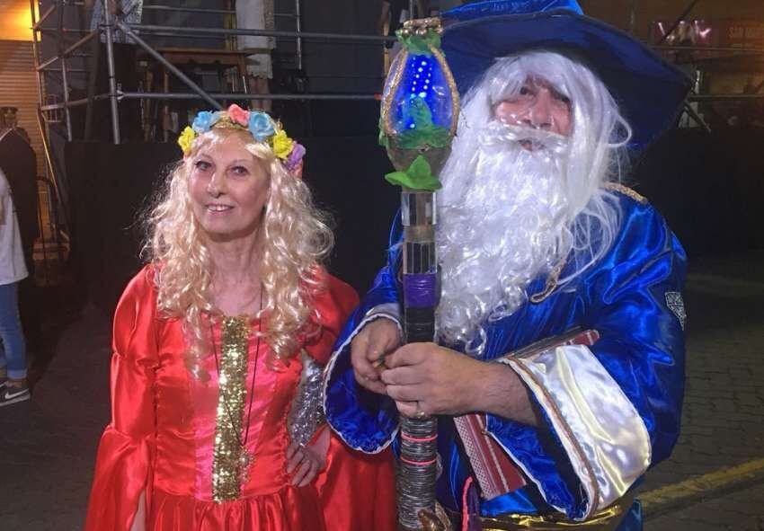 Sin revelar sus verdaderas identidades, el mago Alatar y la princesa Riluwen le pusieron un mágico color a la previa de la Vía Blanca. Detrás de la banda de la Policía y antes de los carros de las reinas, desfilaron con sus llamativos atuendos. Y hasta se animaron a hacer uno de sus trucos con fuego cerca del palco oficial.