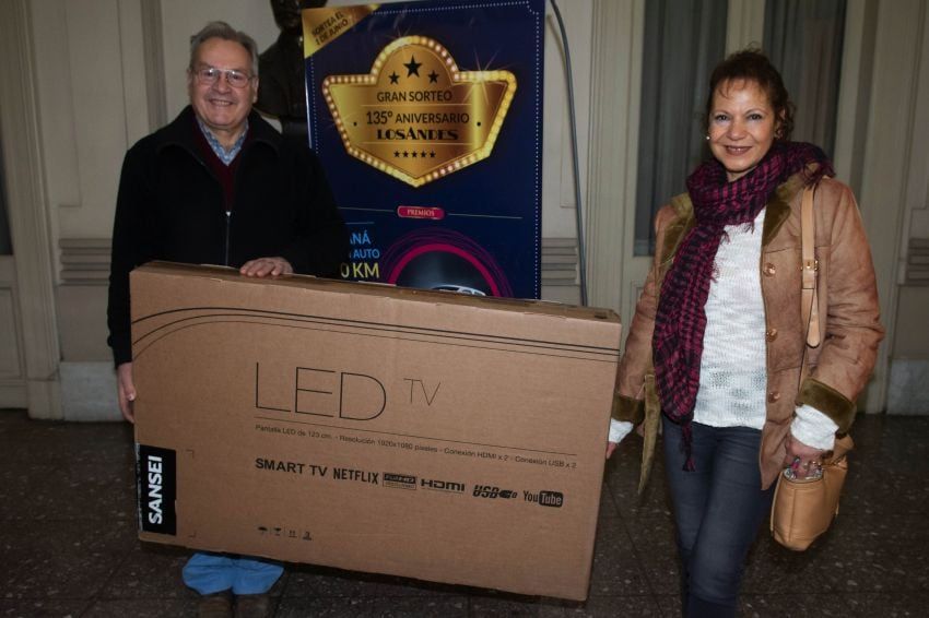El resto de los 13 ganadores del Gran Sorteo 135 Aniversario de mayo recibieron televisores Smart Tv de 49 pulgadas y órdenes de compra por $ 5 mil. Con alegría en sus rostros, los ganadores de Los Andes señalaron que ya tienen destinos definidos para sus premios, en el caso de los televisores LED, será para disfrutar en familia los goles y gambetas del Mundial, en tanto en el caso de las órdenes de compra tendrán destinos tan diversos como ayudas familiares y aportar para el ahorro de las próximas vacaciones.