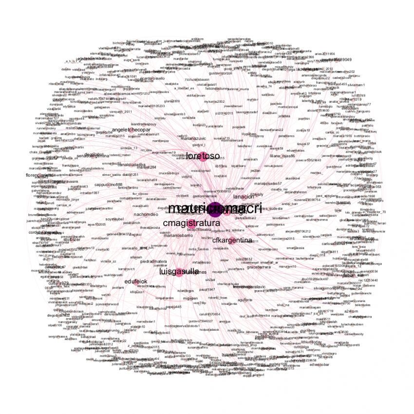 Aparecen en el centro de la escena, la cuenta de @mauriciomacri en Twitter como más mencionada junto a @cmagistratura @cfkargentina @luisgasulla @loretoso @edufeiok @angeletchecopar @marianazuvic @morenoparalavic.