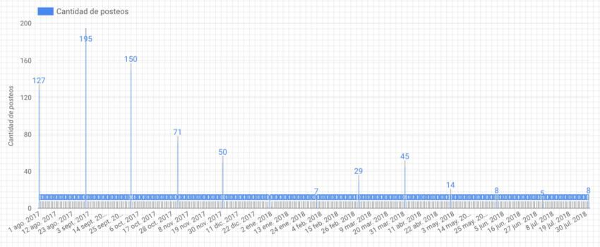 Cristina tomó una decisión importante en cuanto a sus publicaciones en Facebook en este 2018: bajar la cantidad de posteos y participación en la red social. En lo que va de este año, bajó un 64% su cantidad de posteos promedios en comparación con 2017. ¿Estrategia, cambio de roles en el Estado o falta de contenido? No lo sabemos pero claro está que ni siquiera los períodos de crisis de Macri ha despertado su interés de interactuar con sus audiencias.