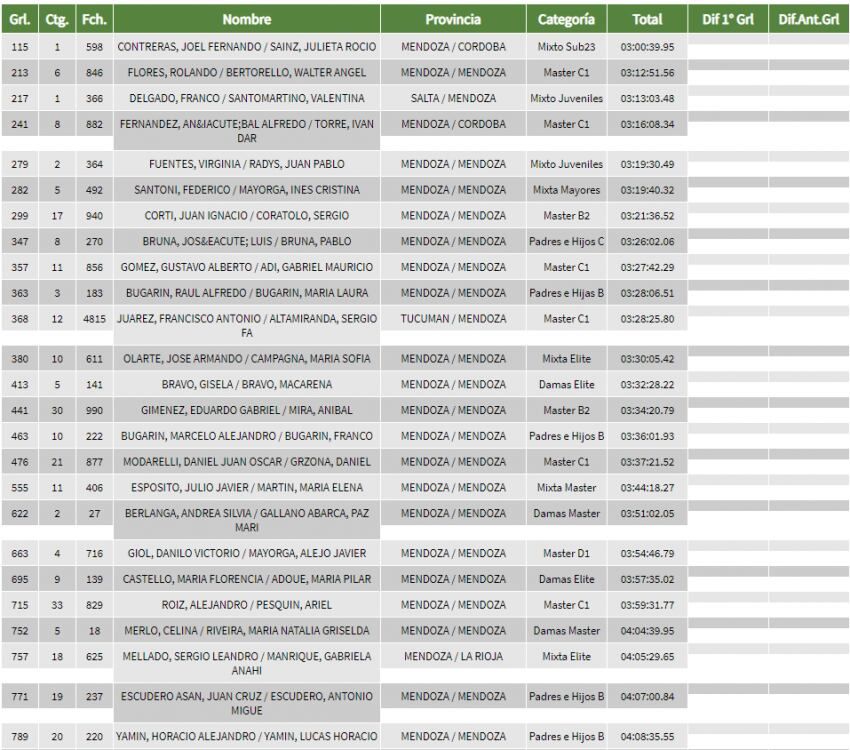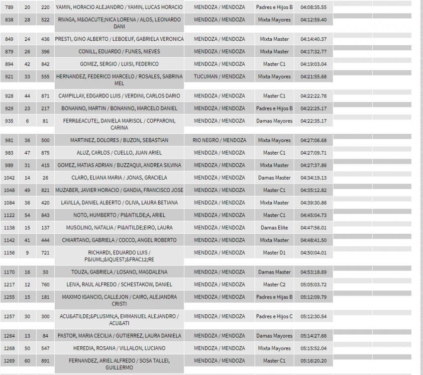 Los otros mendocinos destacados que hicieron podio fueron Raúl Bugarín y su hija María Laura, quienes terminaron terceros en la categoría "Padres e Hijas B".