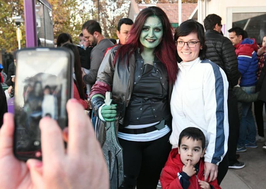 Vestido como el súper villano Thanos. Fabricio Vaccarina, no paraba de sonreir para sacarse fotos con los asistentes. "Somos cosplayers y nos gusta mucho este tipo de eventos, si bien esperábamos mucha gente, no nos imaginábamos que tanta", señaló el joven con la cara violeta y el guante que caracteriza al personaje.