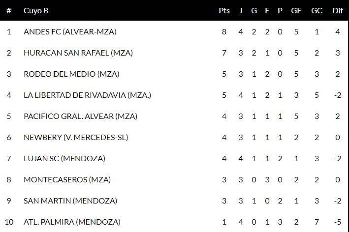 Por la cuarta fecha de la Zona B de la región Cuyo del Federal B, Luján Sport Club le ganó 1-0 a Palmira y Andes de General Alvear goleó 3-0 a La Libertad.