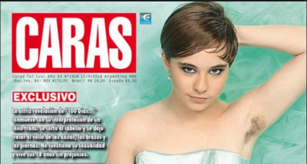 Maite Lanata posó para la tapa de Caras con pelos en las axilas en primer plano. La actriz encarna en la ficción a Juani, el chico trans de "100 días para enamorarse". A sus 18 años ella reconoció que no tiene dramas con su sexualidad.