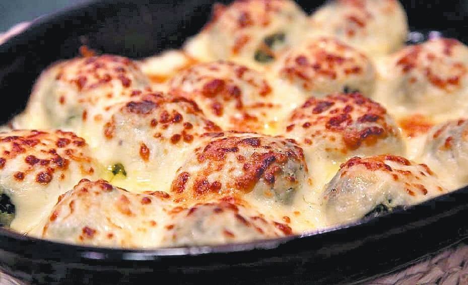 Cubrir las albóndigas con la salsa blanca y echar un poco de queso rallado por encima. Llevar al horno y cocinar hasta gratinar. Retirar, servir y disfrutar.