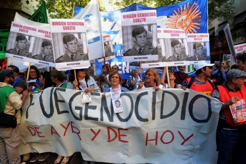 Entre otras consignas, una de las más repetidas fue la de "Madres de la Plaza, el pueblo las abraza" y entre los reclamos, el más fuerte -expresado también en cánticos y carteles- fue que continúen en la cárcel los genocidas condenados por crímenes de lesa humanidad.