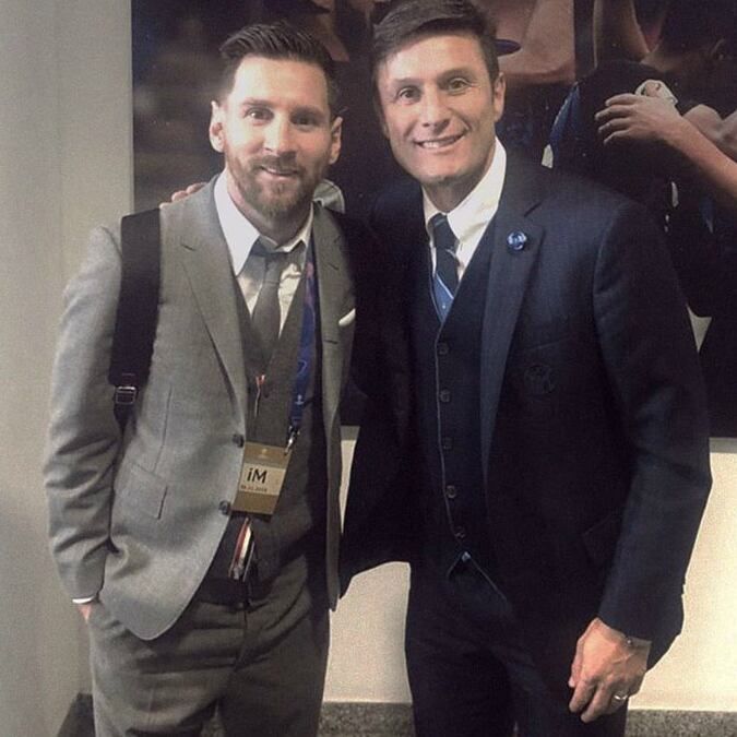 El máximo goleador histórico de Barcelona, camino a su ubicación en la platea, se encontró con Javier Zanetti, actual dirigente e ídolo de Inter, donde jugó entre 1995 y 2014. Messi, Zanetti y el delantero Luis Suárez dialogaron en forma amistosa durante unos minutos en la previa del partido.