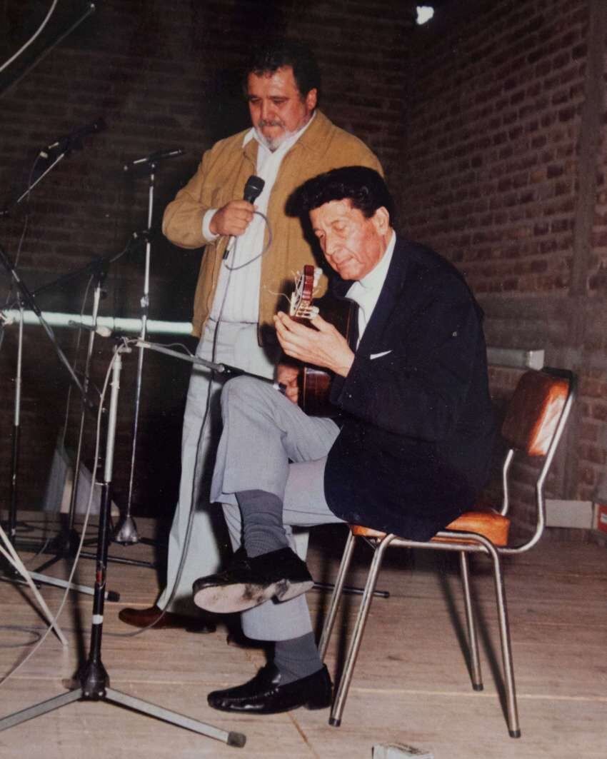 Esta foto inédita con el admirable Tito Francia está enmarcada en un muro del escritorio de Sosa, junto con docenas de portadas, placas y dibujos. Dos iconos para la tonada.