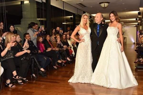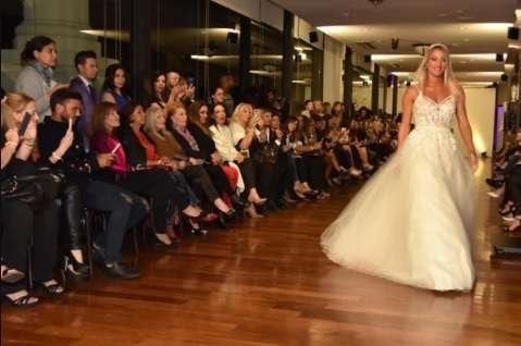 Anoche se realizó el lanzamiento del Argentina Fashion Week y la rubia de Combate desfiló un romántico vestido de novia del diseñador Claudio Cosano ante la atenta mirada -y el celular- del jugador de Vélez.