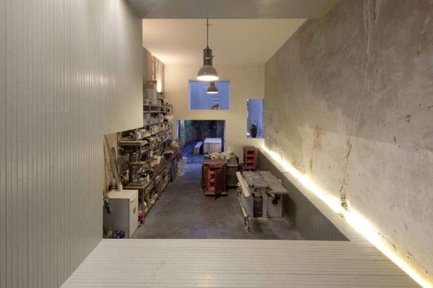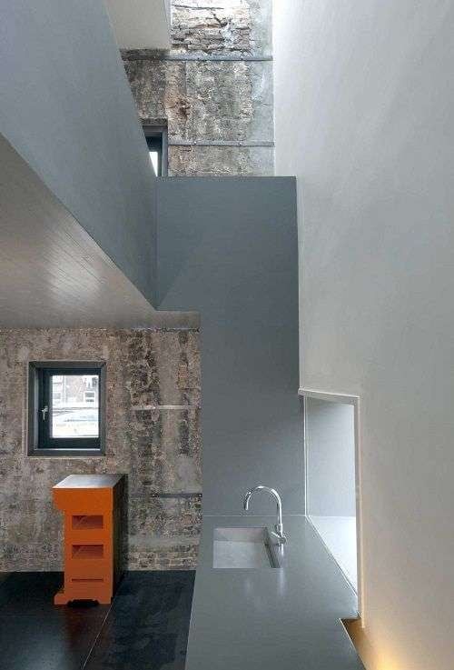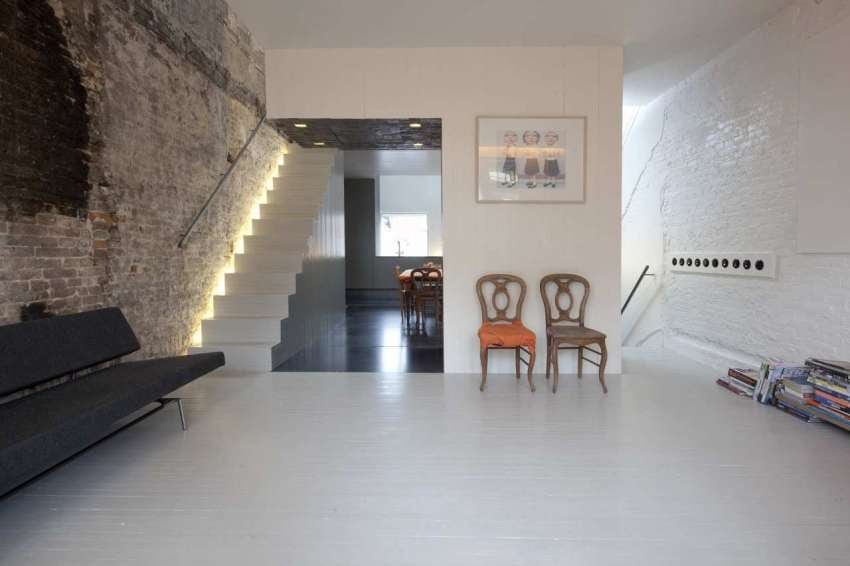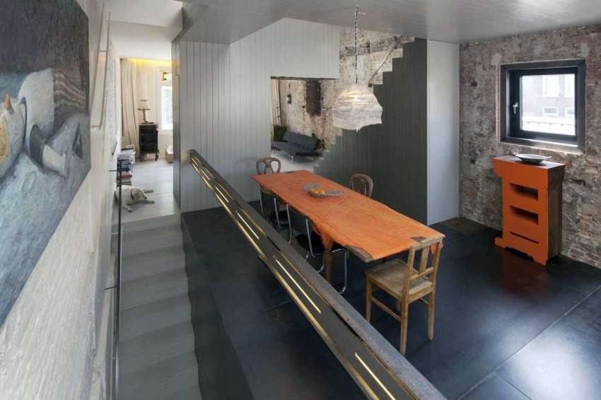 En su diseño interior obtuvo un ambiente agradable e inspirador, gracias a la combinación de paredes antiguas de ladrillo visto y las modernas escaleras. A ello se unen un mobiliario funcional y sencillo sin grandes aspiraciones, con líneas rectas y tonos apagados, excepto por ciertos muebles anaranjados. Una simbiosis perfecta entre vanguardia y tradición.
