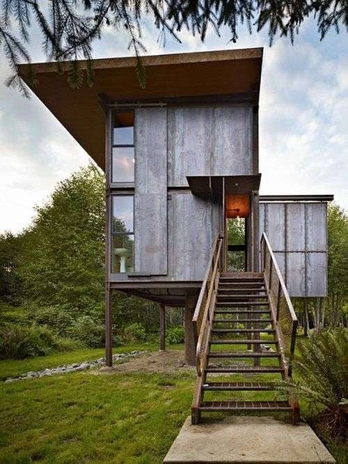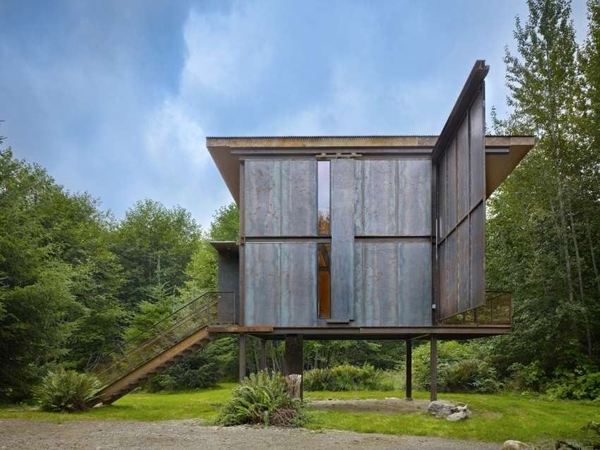 En el bosque de la Olympic Peninsula (en el estado de Washington) encontramos una cabaña prácticamente indestructible, el diseño original buscaba crear un lugar sencillo que redujera al mínimo el coste en mantenimiento.