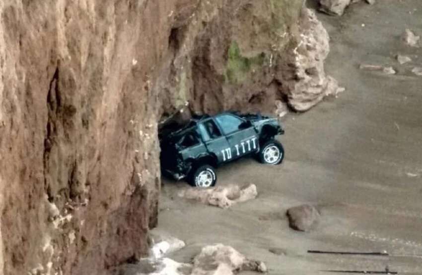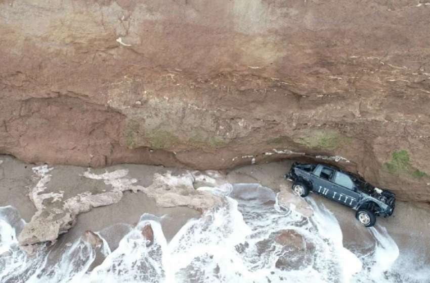 Se trata de una Grand Cherokee negra, que se precipitó desde la cumbre de un acantilado que está a 250 metros de la calzada de la ruta 11. El vehículo quedó incrustado en la arena de la playa Los Lobos y todavía resta saber cómo fue que cayó y en qué situación.