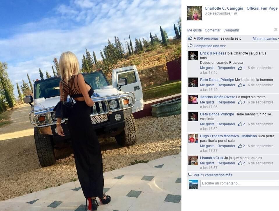 Mientras ella postea fotos al lado de autos de lujo, en escenarios europeos y en casas lujosas, sus fans comentan. Por ejemplo, una le dice que es “la mujer sin rostro”. Otro le pide “mostrá la cara deforme”.