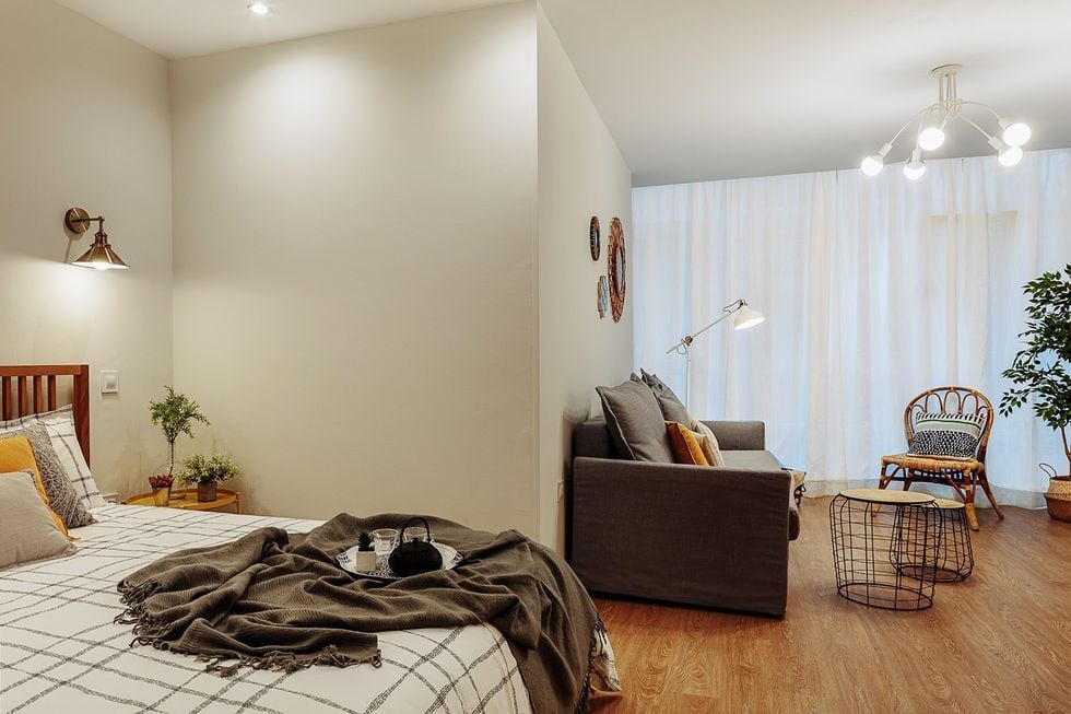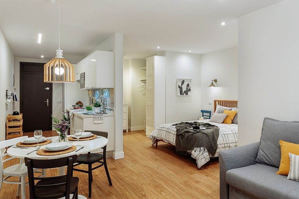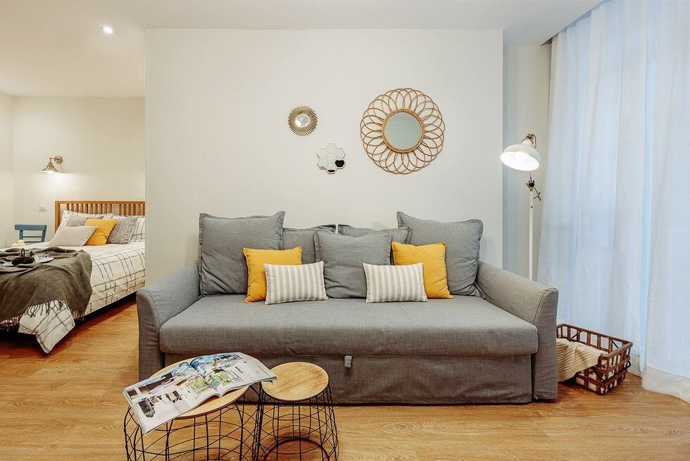 Una interiorista española reformó este minipiso para que las distintas habitaciones compartieran espacio y así hacer posible una vida cómoda y funcional.