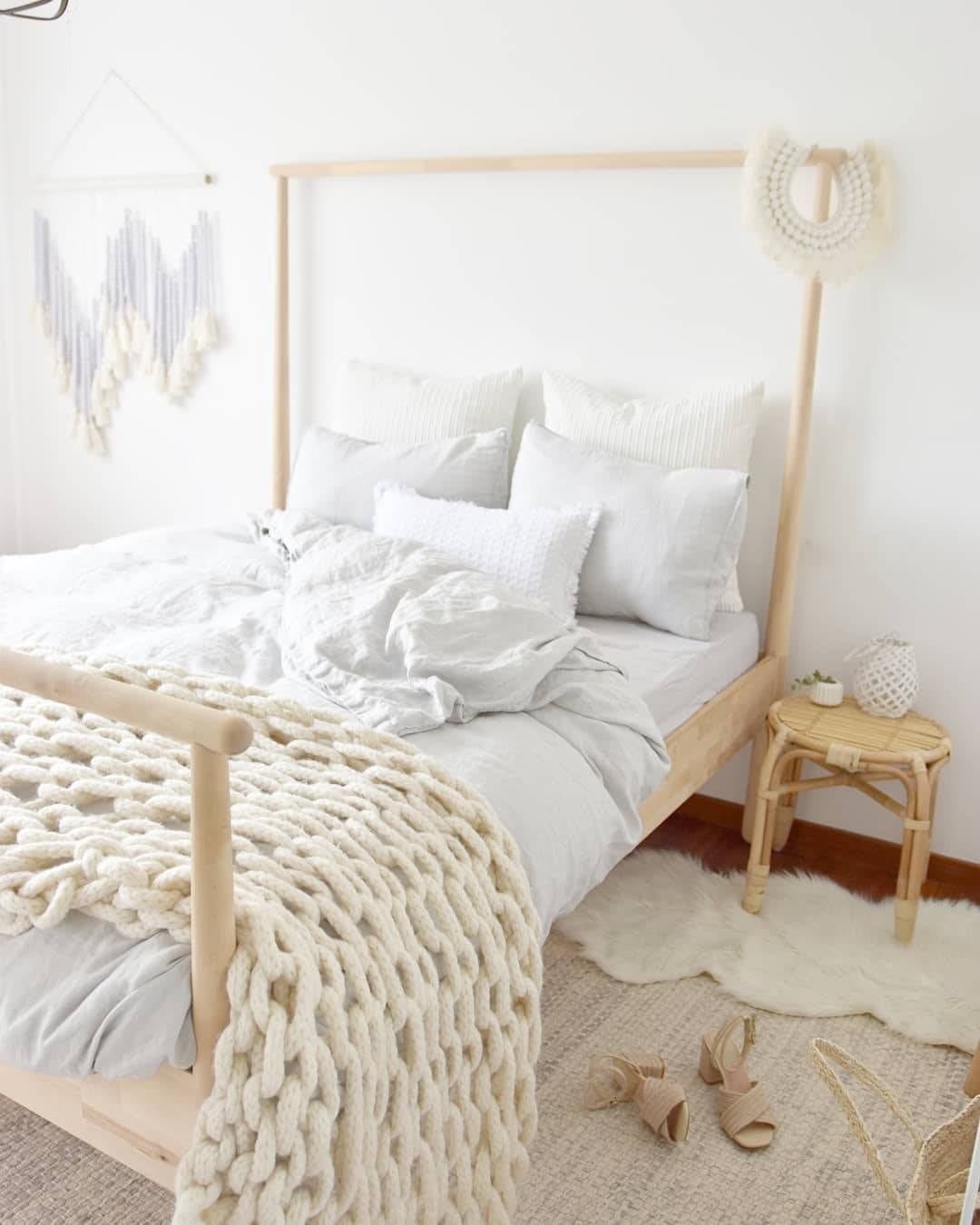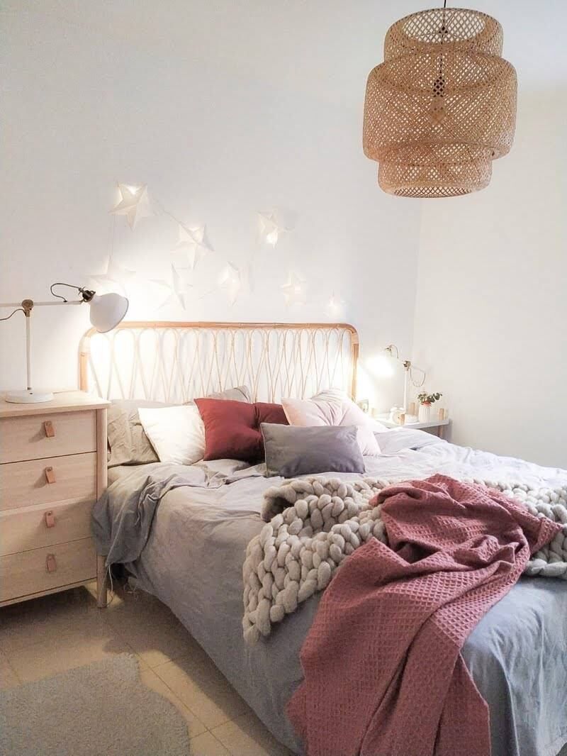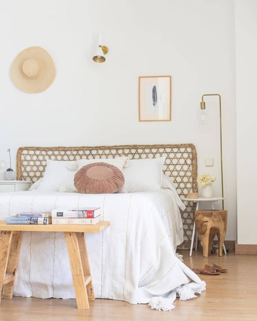 La instagramer María Pazos confiesa que al principio le gustaba comprar la decoración de cada habitación de una vez, pero que con el tiempo ha aprendido que es mejor ir despacio. Su dormitorio refleja su estilo de vida slow. Nos encanta la última incorporación de la estancia: un panel trenzado de bambú natural de Deco & Living a modo de cabecero.