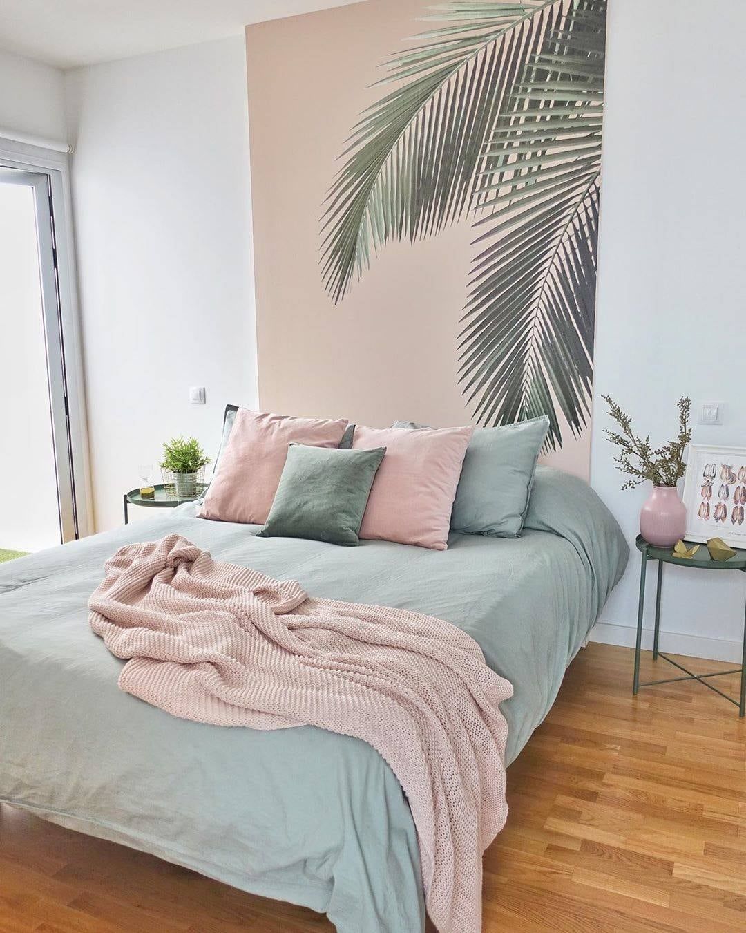 ¿Para qué querés un cabecero cuando tenés ideas y una pared para plasmarlas? Eso es lo que habrán pensado un grupo de chicos que crearon un mural que nos transporta a un entorno tropical, con tonos rosados como los que suelen aparecer en los atardeceres del verano.