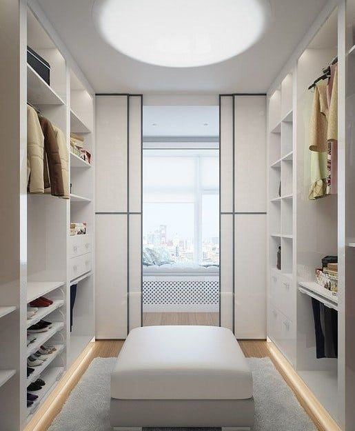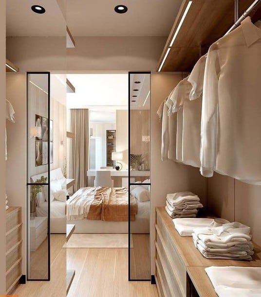 Si el vestidor es abierto, es decir, interiormente sin puertas, se aprovecha mejor el espacio, se encuentra más fácilmente todo porque lo tenemos a la vista, pero hay que tener en cuenta que nos obliga a un orden constante.