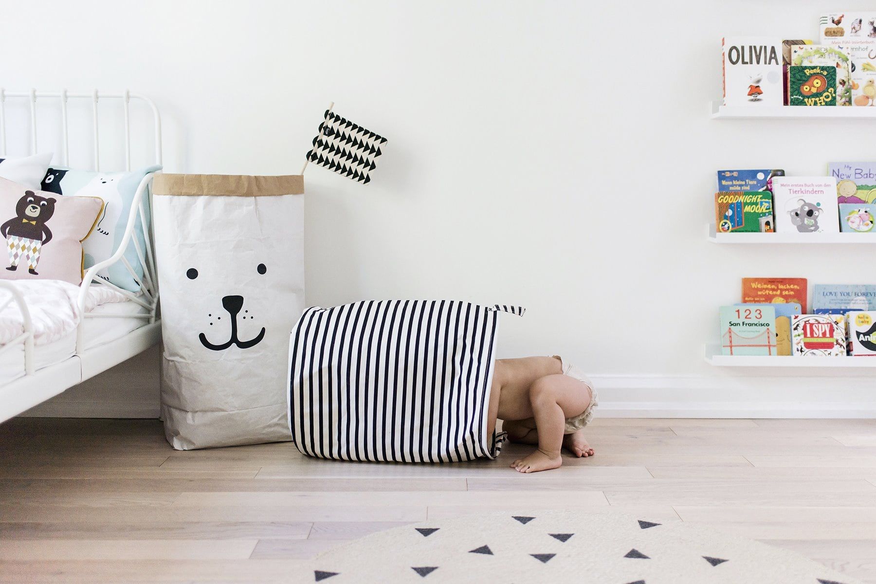 Si fuera por tu hijo, los juguetes formarían un mosaico desordenado en el suelo todo el día. Merece la pena, pero con matices. Es decir, la casa mejora visualmente cuando los juguetes están en su sitio, pero podés almacenarlos en lugares "informales", como bien una cesta de paja o un aparador divertido. Recoger -ya sabes- puede formar parte del juego.