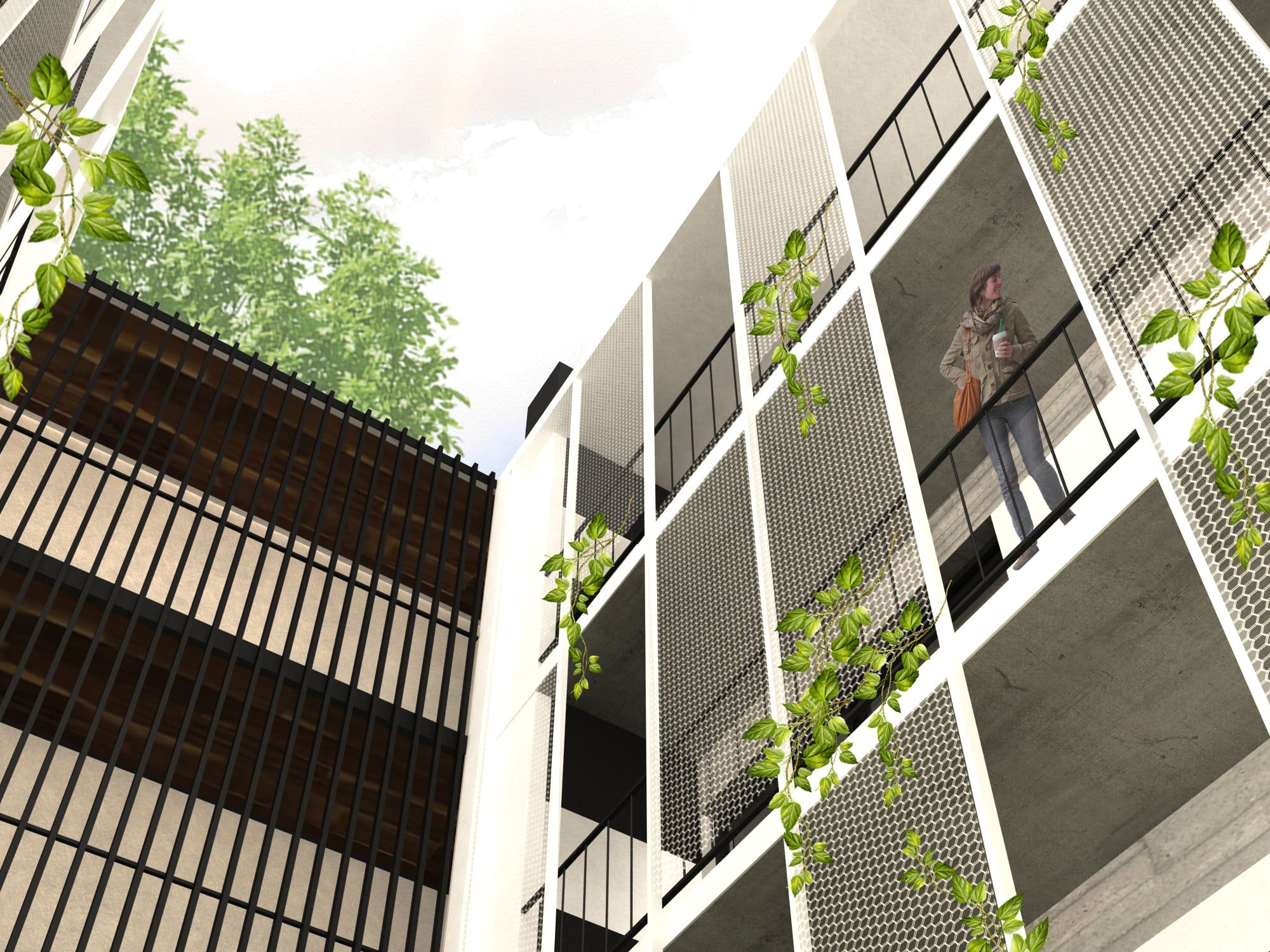 El proyecto arquitectónico del edificio esta realizado por MFOLM Arquitectos. Se sitúa en un terreno de 480m2 y tendrá 1460m2 construidos. En un terreno de forma rectangular se disponen tres bloques, con tres grandes patios. El último de estos patios se convierte en pulmón de manzana.