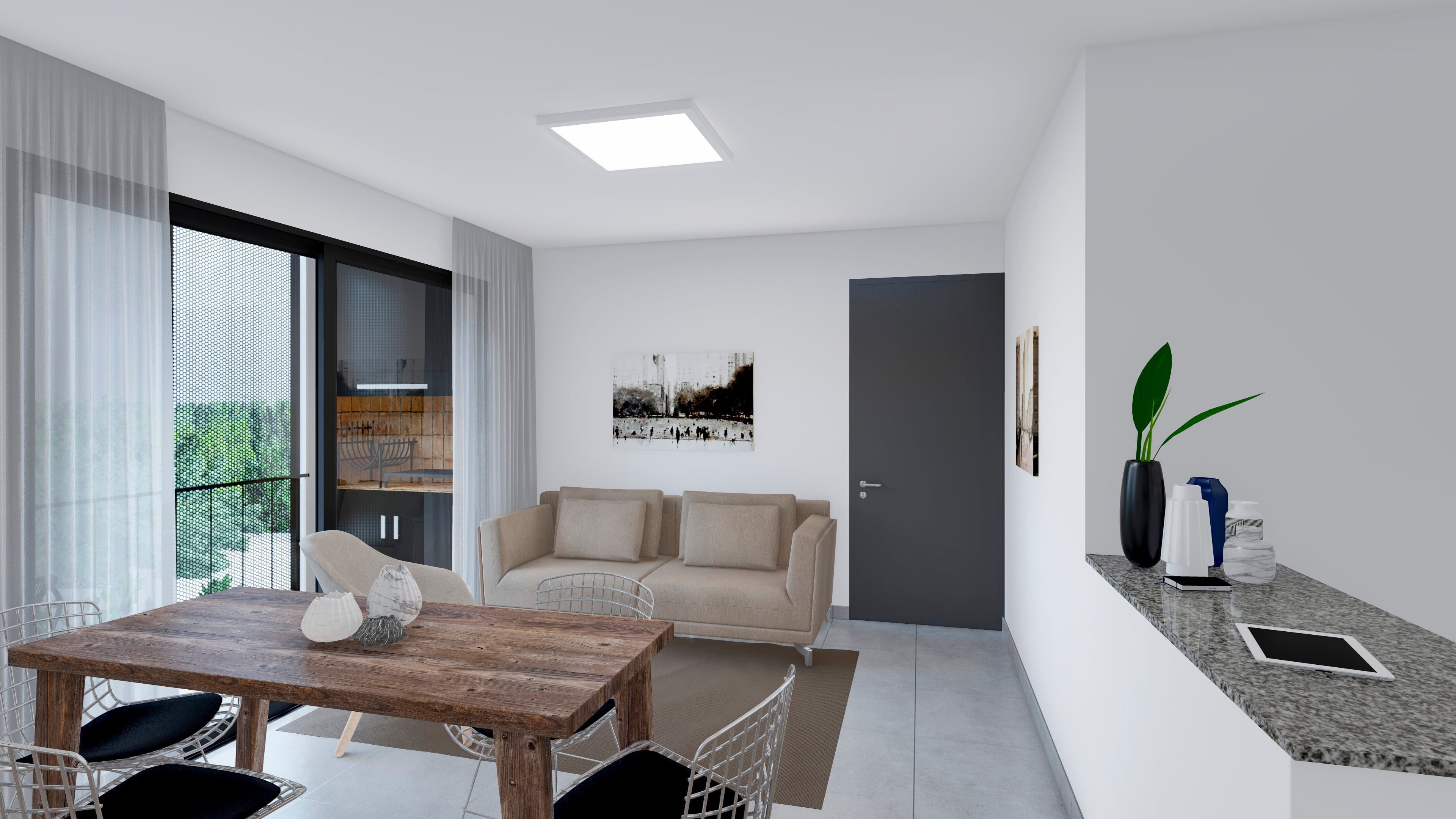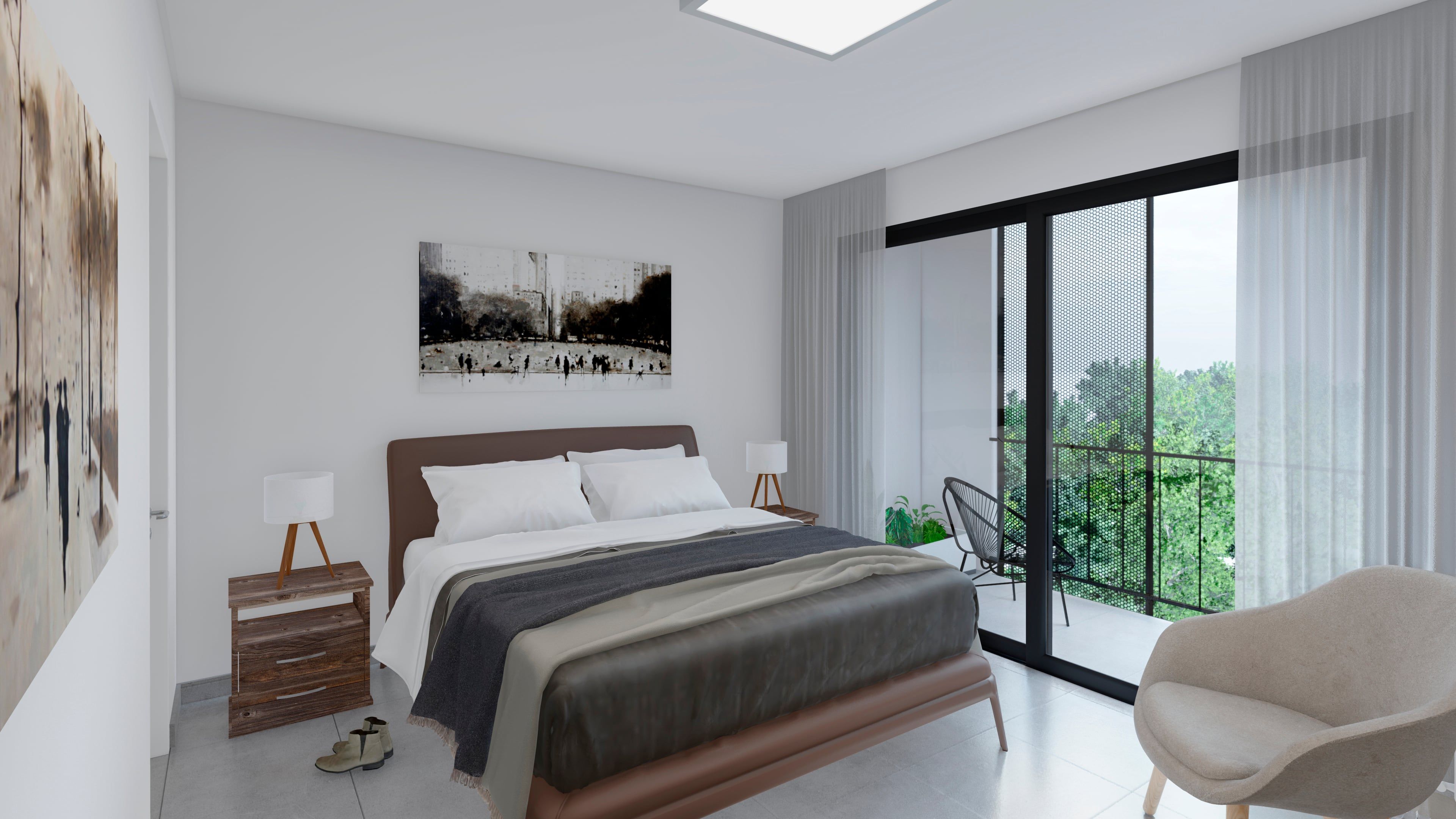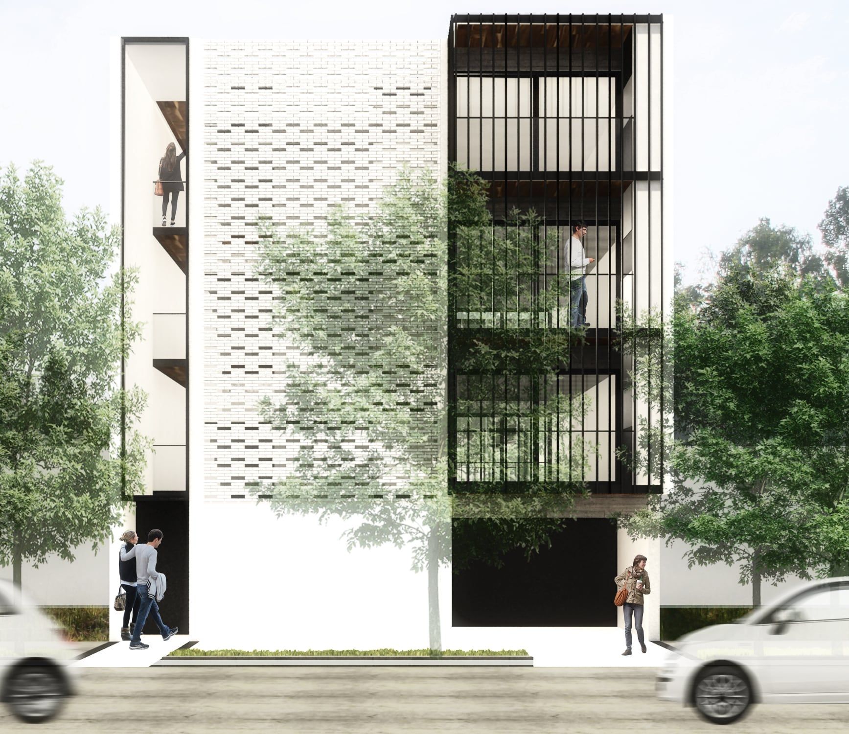 El proyecto consta de 14 departamentos y 14 cocheras. Con unidades de uno y dos dormitorios. Desarrolla una arquitectura de vanguardia, con hall de acceso de triple altura, ascensor de última generación, sistema de seguridad con cámara para monitorear el ingreso y egreso. El acceso a las cocheras es independiente y contará con un sistema de apertura automatizado.