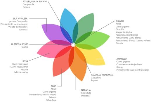 En un círculo cromático verás cómo se obtienen los colores secundarios, terciarios y más. Cuando querés combinar los colores en tu jardín y elegís el violeta, verás que a su lado encontrarás el rojo y el azul. Entonces, podrás utilizarlos y quedarán en armonía.