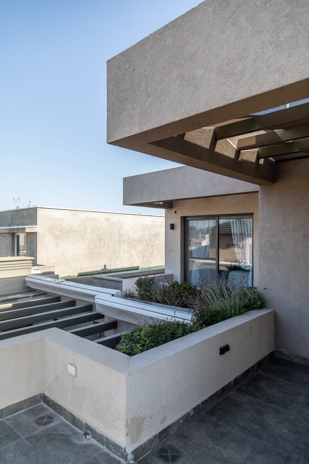 Ambos dormitorios tienen su propio balcón dominado por un cantero lineal que termina de llenar de naturaleza a los espacios interiores.