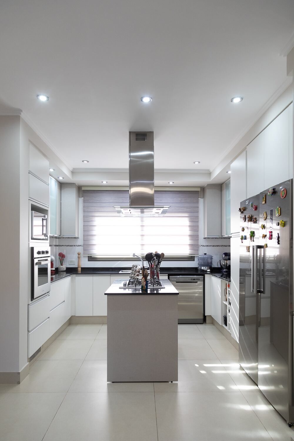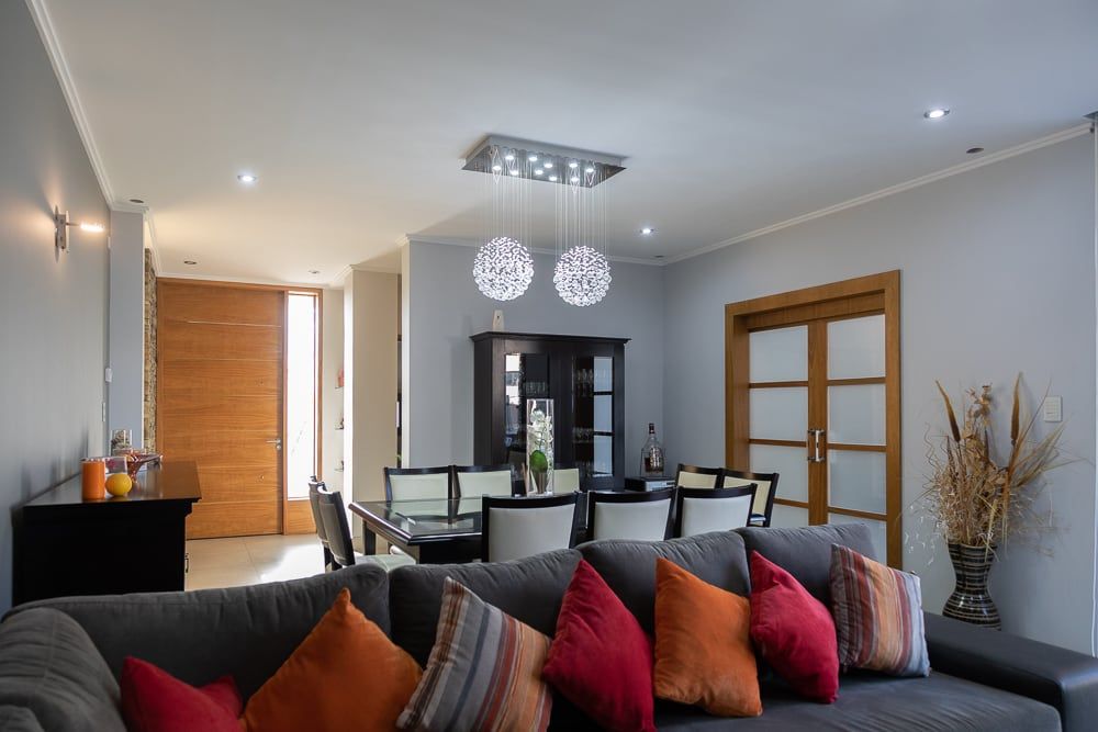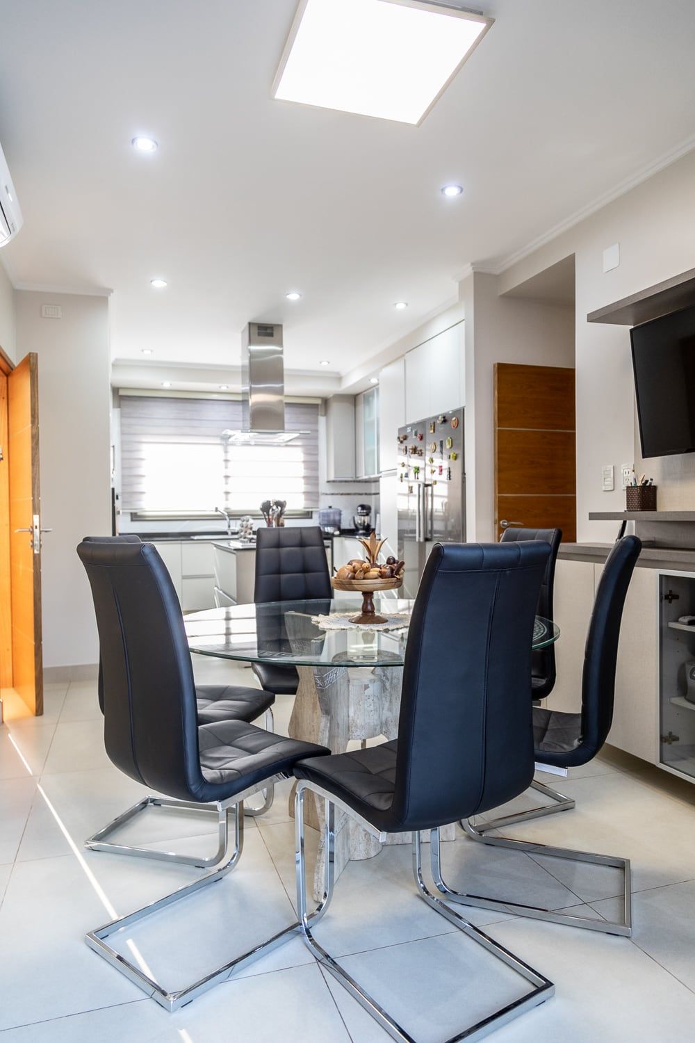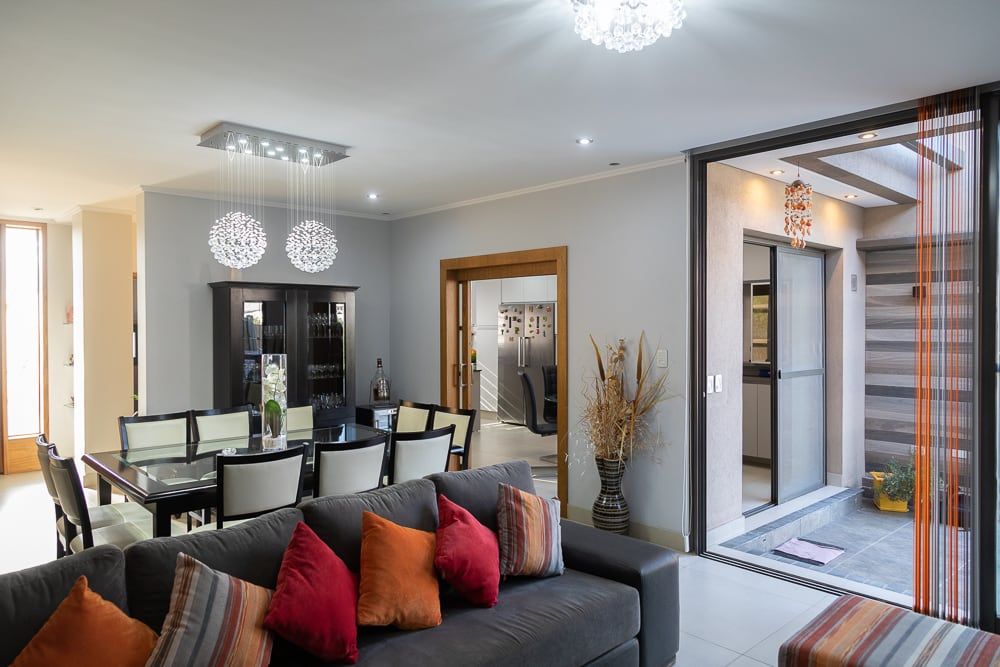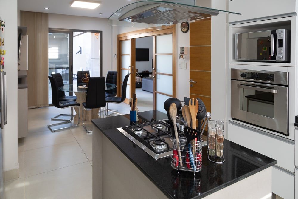 La cocina con isla se integra al comedor diario y forman un ambiente acogedor, donde compartir los momentos típicos de la rutina diaria. Una doble puerta corrediza une el comedor diario con el estar comedor principal, logrando así la ductilidad de estos ambientes de acuerdo a las actividades que se estén desarrollando.