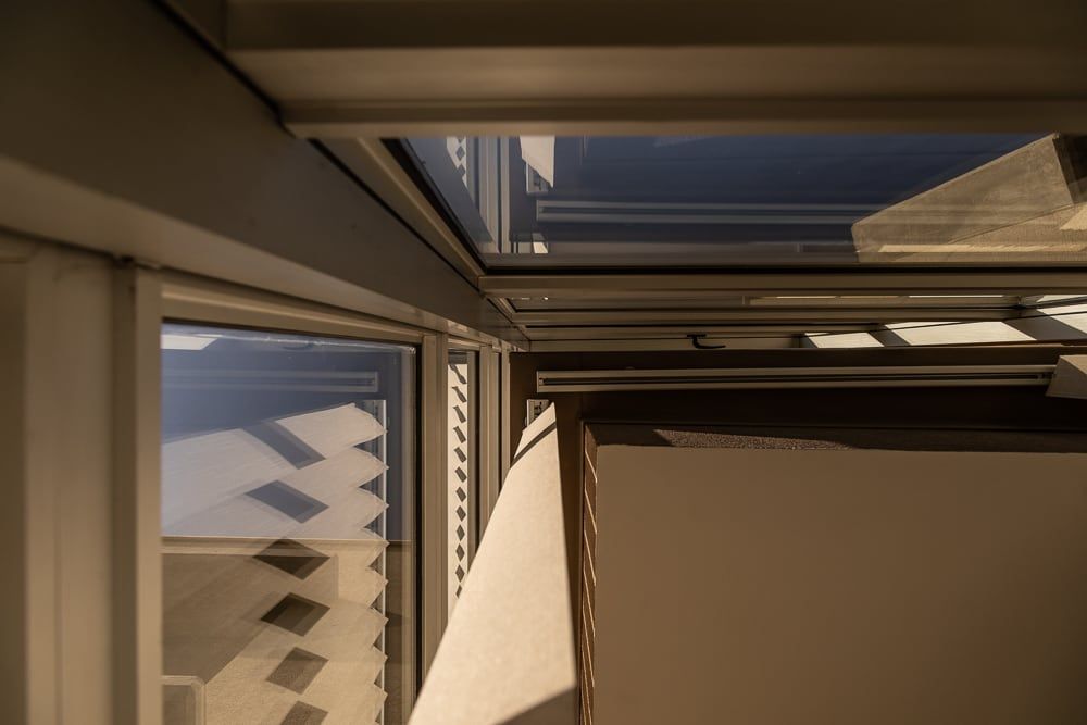 Para regular el impacto de esta envolvente, se revistieron las fachadas sur y oeste con espuma de poliuretano proyectado, logrando así una aislación térmica de toda la fachada en sus caras más desfavorables. Por otro lado, las fachadas este y norte son las que conectan al jardín con los espacios interiores de la vivienda, logrando así que el sol del invierno bañe con calidez los ambientes y reduciendo considerablemente el consumo de energía tanto para calefaccionar en invierno, como para refrigerar en verano. La pérgola de la terraza acompaña este criterio y termina siendo el elemento que logra aportar la regulación del sol según las necesidades en cada época del año.