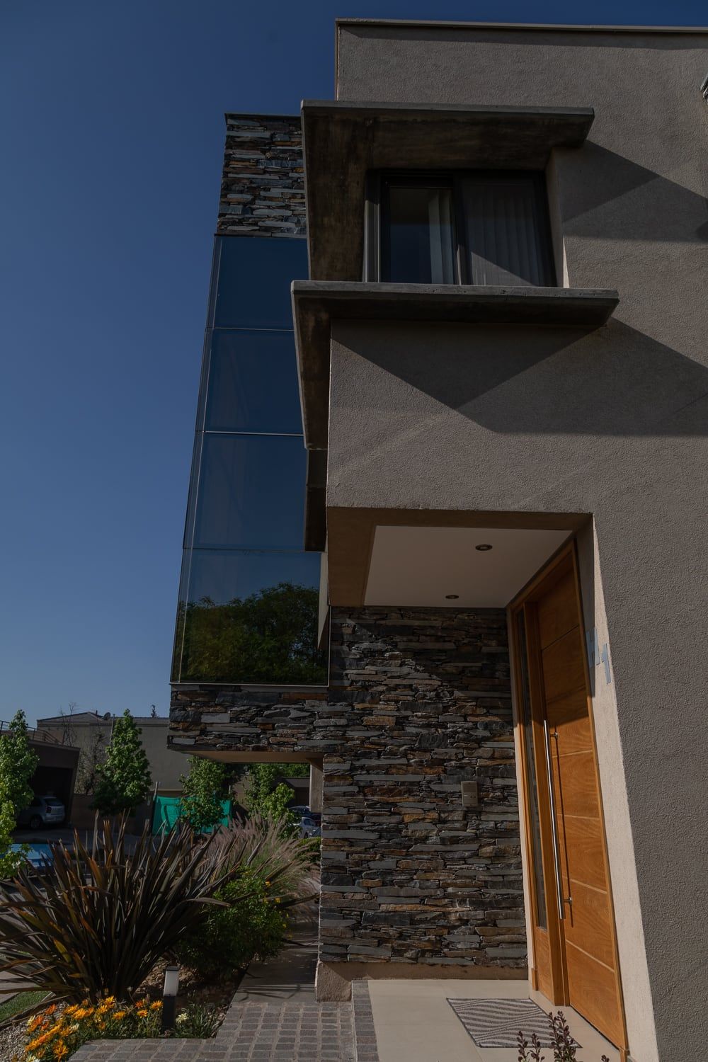 Las premisas de diseño estuvieron desde un principio muy definidas. Estéticamente busca líneas geométricas puras y limpias, pero tamizadas por la calidez de los materiales y el uso de recursos como canteros y vegetación.