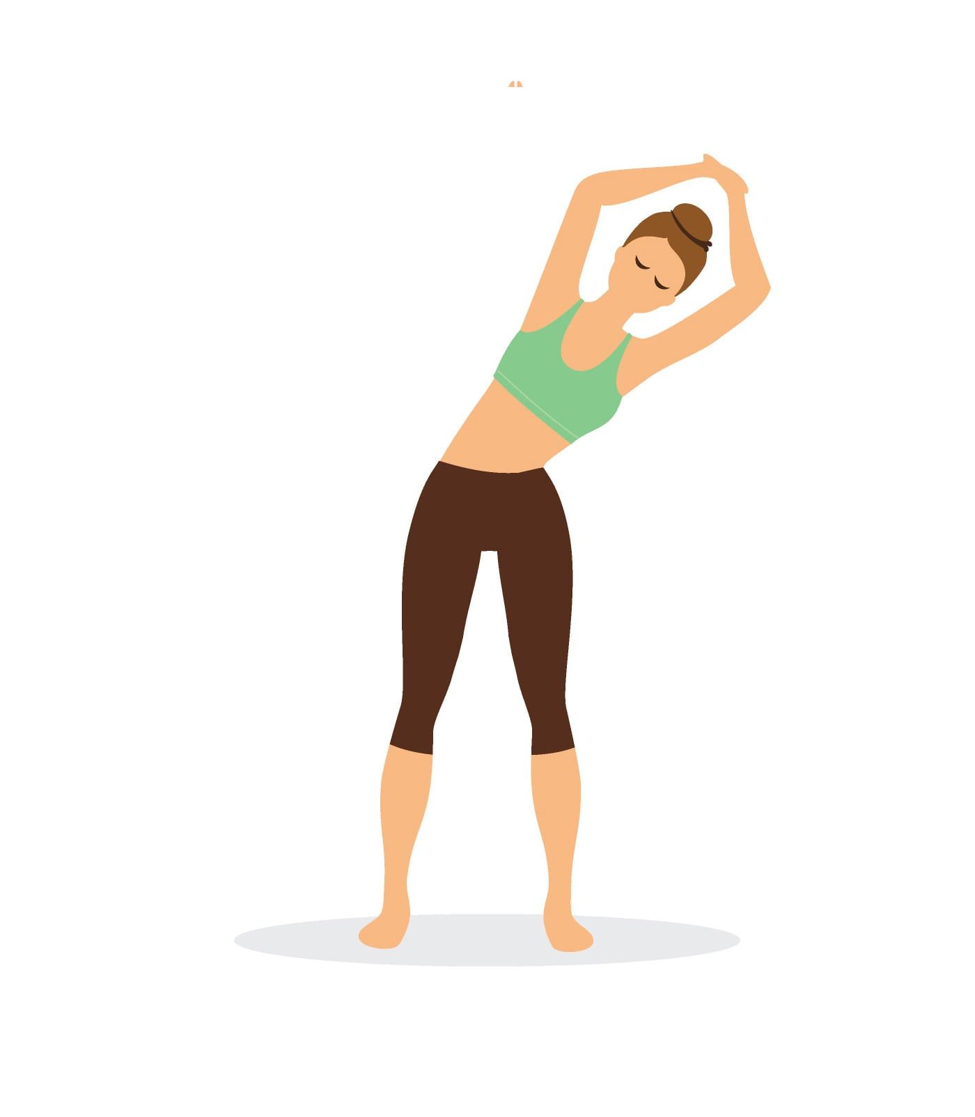 Podemos hacer el mismo ejercicio pero en vez de llevar ambos brazos hacia arriba -por encima de la coronilla-; estiramos un solo brazo mientras que el otro queda relajado al costado del cuerpo. Esto permite el retorno venoso, lo que limpia la sangre y la renueva.
