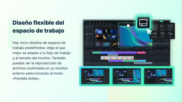 Su diseño es intuitivo, por lo que inclusive quienes tienen pocos o nulos conocimientos en edición de videos lo pueden usar, mientras que los profesionales pueden dejar rienda suelta a su creatividad con todos los efectos integrados en el software, además de la posibilidad de tener acceso a configuraciones avanzadas.