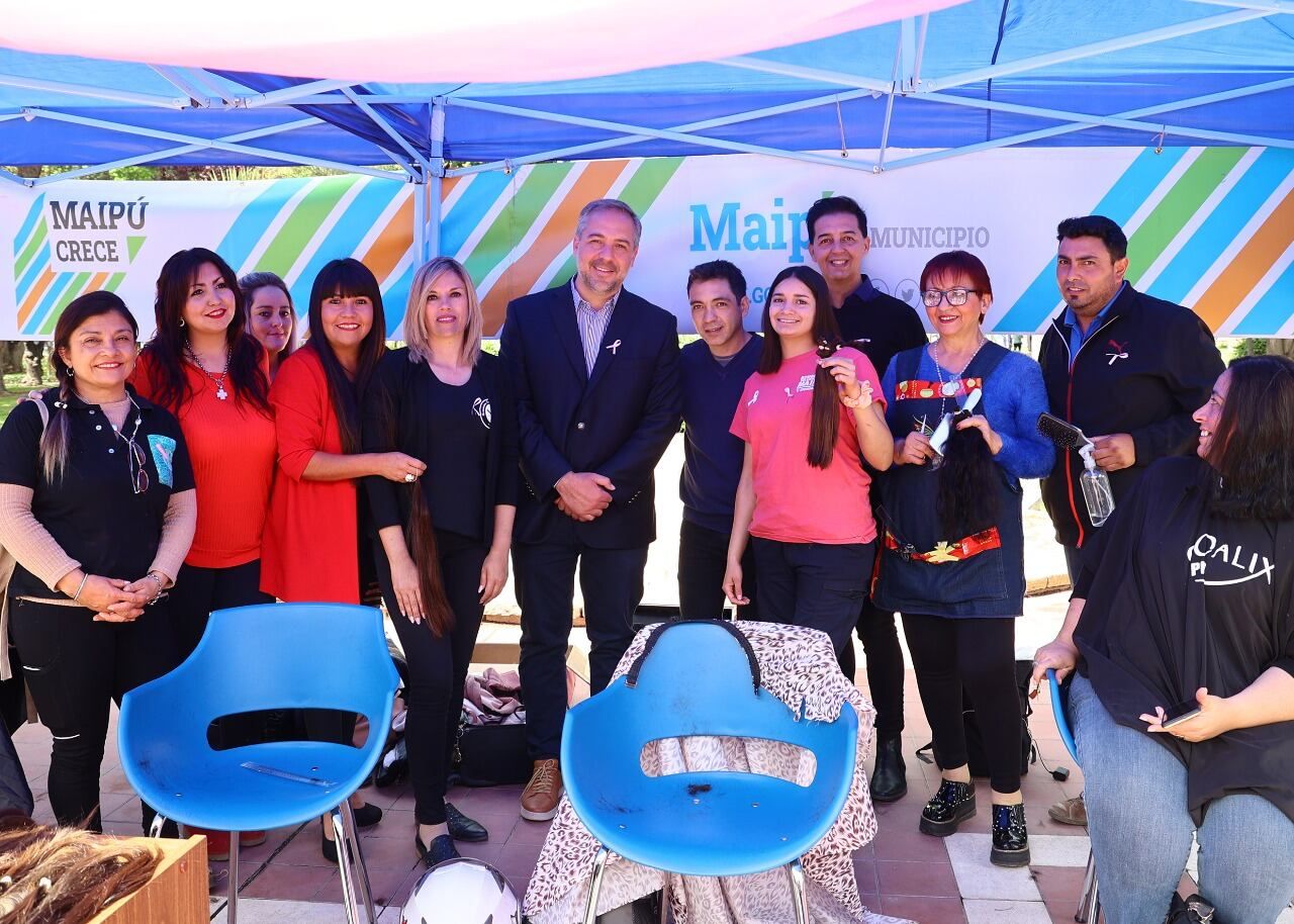 Por ello, la comuna maipucina organizó una actividad llamada “Cabellos Solidarios”, fruto de un trabajo en conjunto entre Fundavita y la Asociación de Peluqueros, quienes buscan recaudar cabello para la confección de pelucas que serán donadas a mujeres que padezcan la enfermedad.