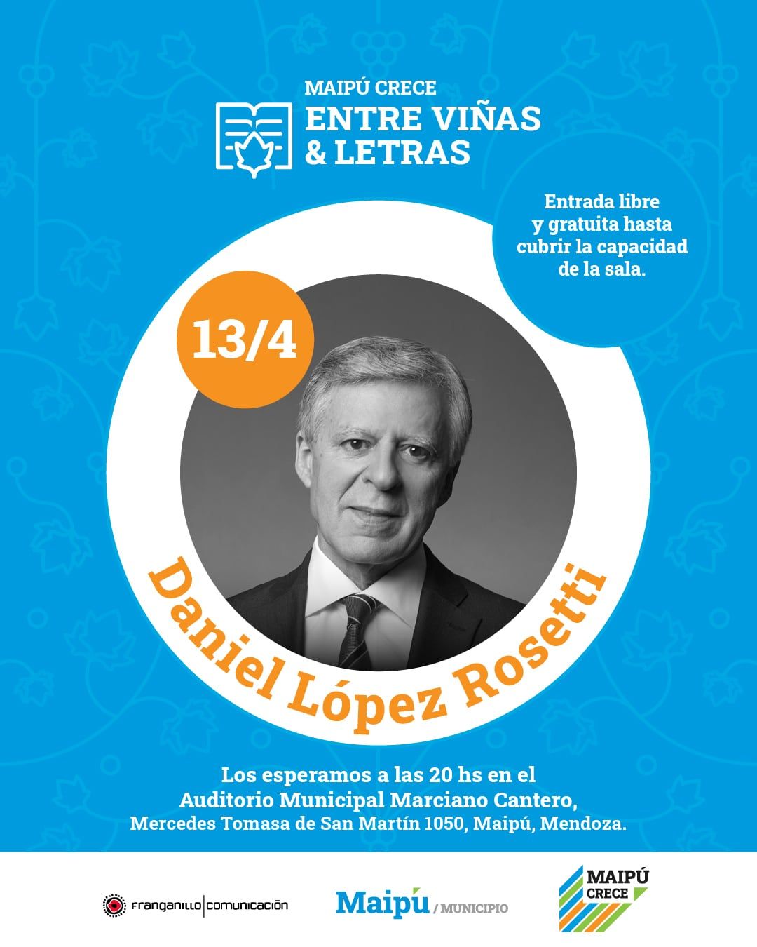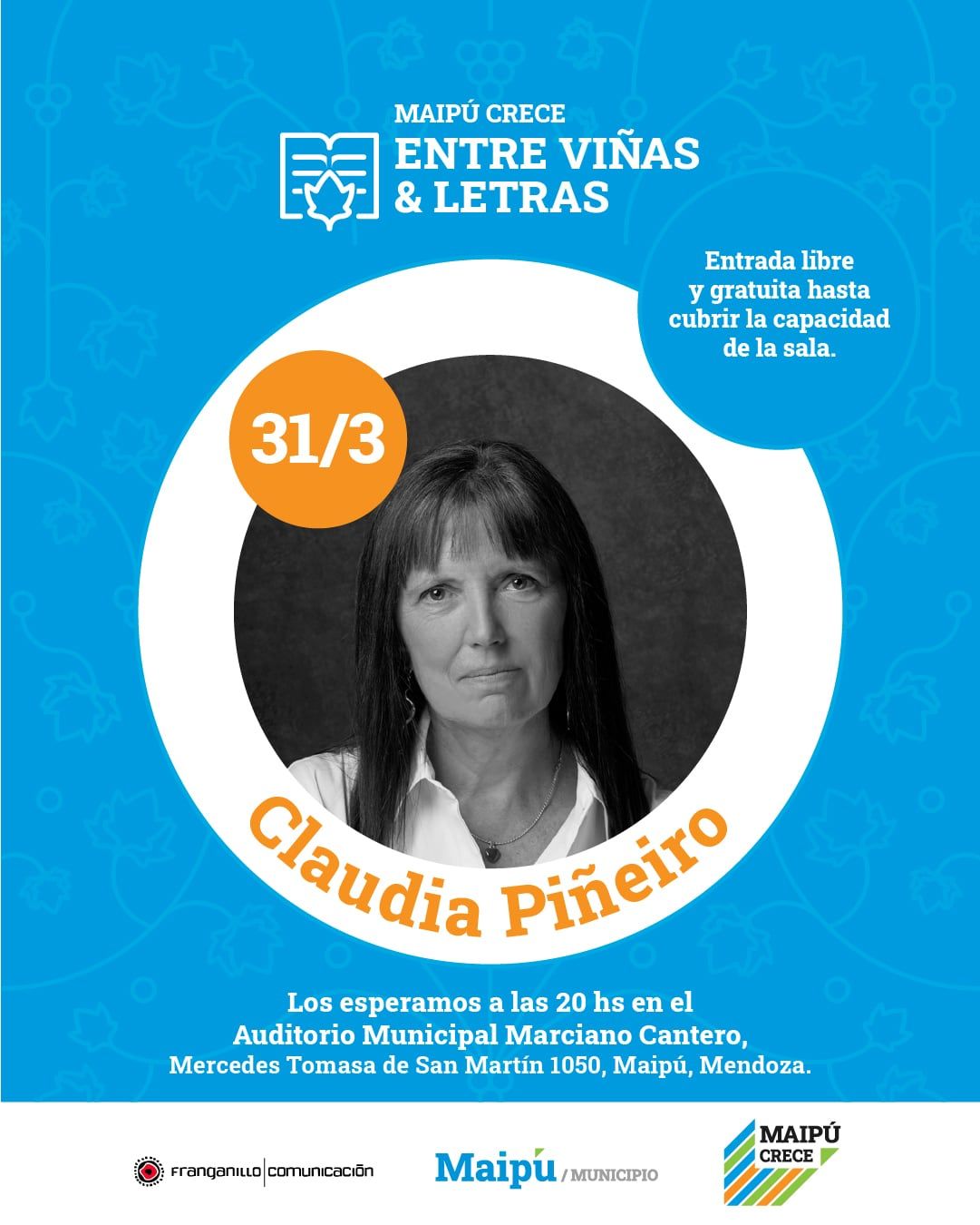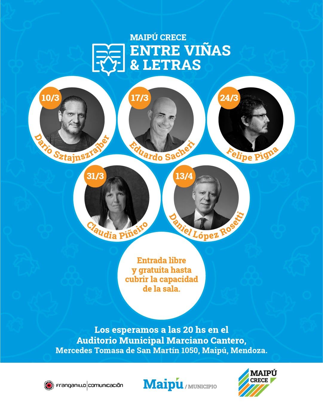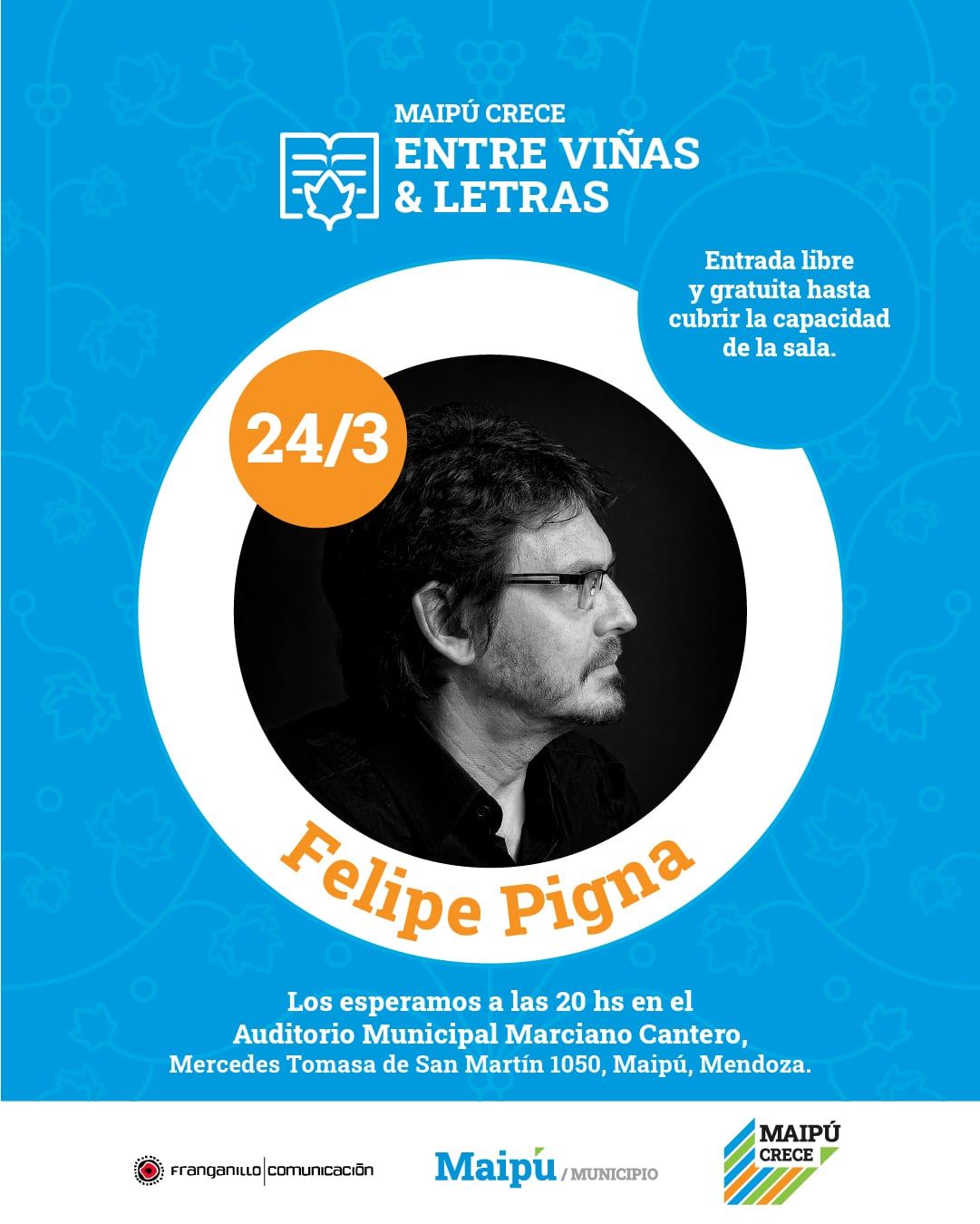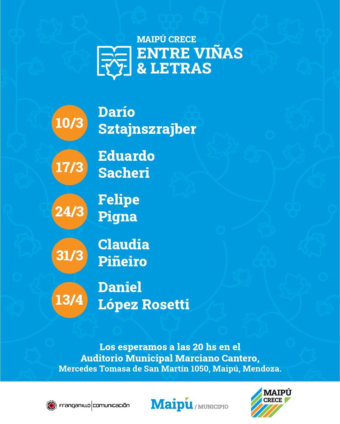 ”Maipú entre viñas y letras” cuenta con la producción general de Franganillo / Comunicación y el patrocinio de la Municipalidad de Maipú, Mendoza.