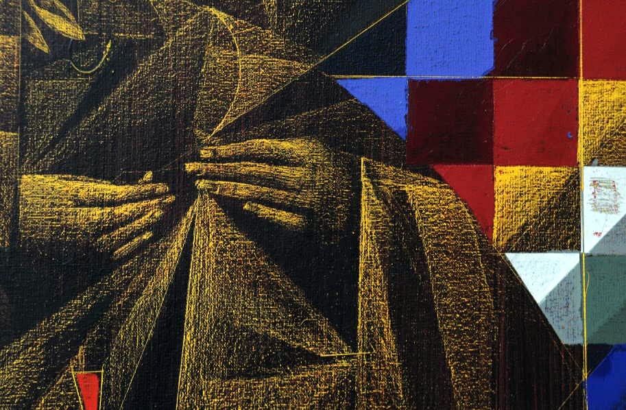 Abstracción despintada. "Soy un despintor más que un pintor", sentencia sobre "Patria Grande", una de sus obras de acrílico sobre tela. Bajo la técnica esgrafiado, consigue el color y la textura de la obra, gracias al uso de las cuchillas y el desgaste de la tela. Las figuras geométricas y humanas son una síntesis de su lenguaje.