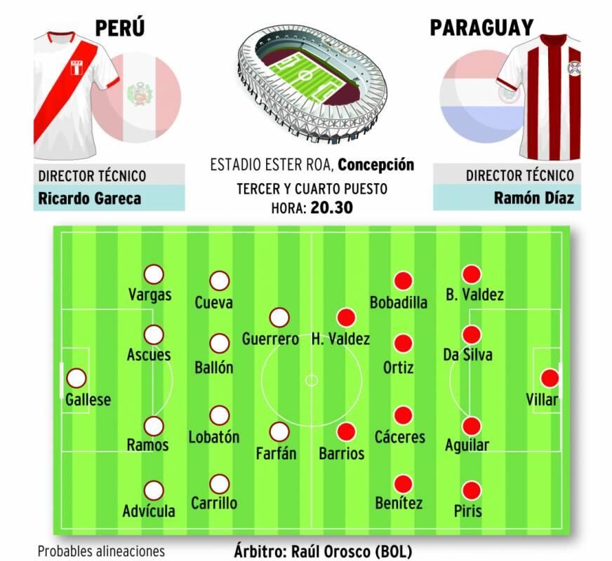 Los seleccionados de Paraguay y Perú se enfrentarán hoy en el estadio Ester Roa de Concepción por el premio consuelo del tercer puesto de la Copa América de Chile 2015.